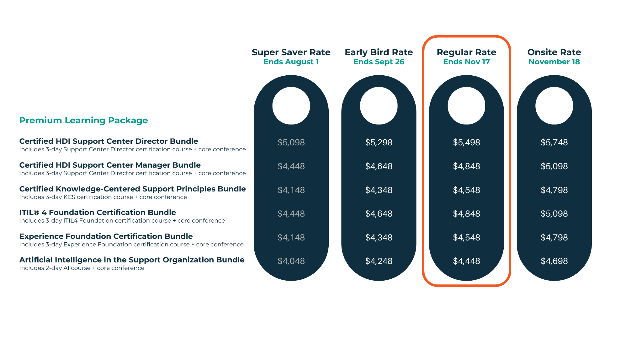 Only have time to come for training? These pre-event training courses can be purchased as stand-alone courses or as part of your bundled conference package giving you the biggest bang for your buck. Many include an online certification exam, and all include breakfast and lunch. Pre-event training students also enjoy complimentary access to the expo hall for receptions, additional learning, and networking opportunities. Contact us at HDIeventreg@informa.com to learn more.